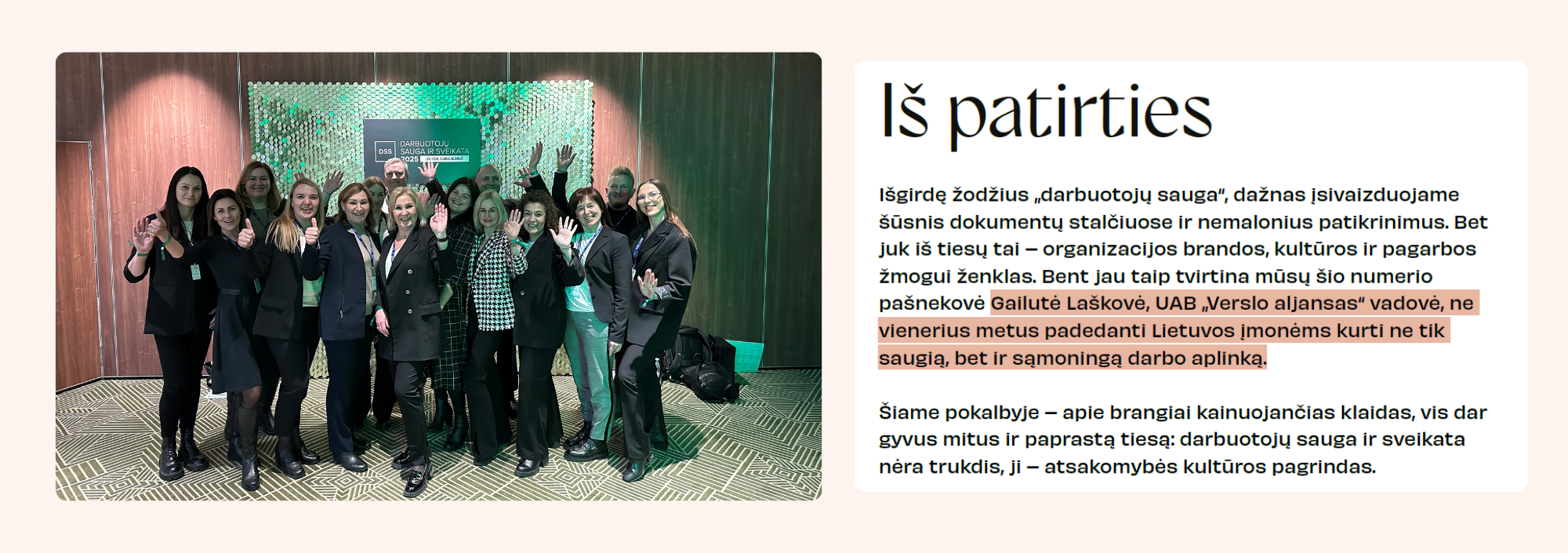 Interviu apie tai, kaip paprasti, bet tikslingi sprendimai padeda sukurti darbo aplinką, kurioje žmonės jaučiasi saugiai – ir dirba geriau.