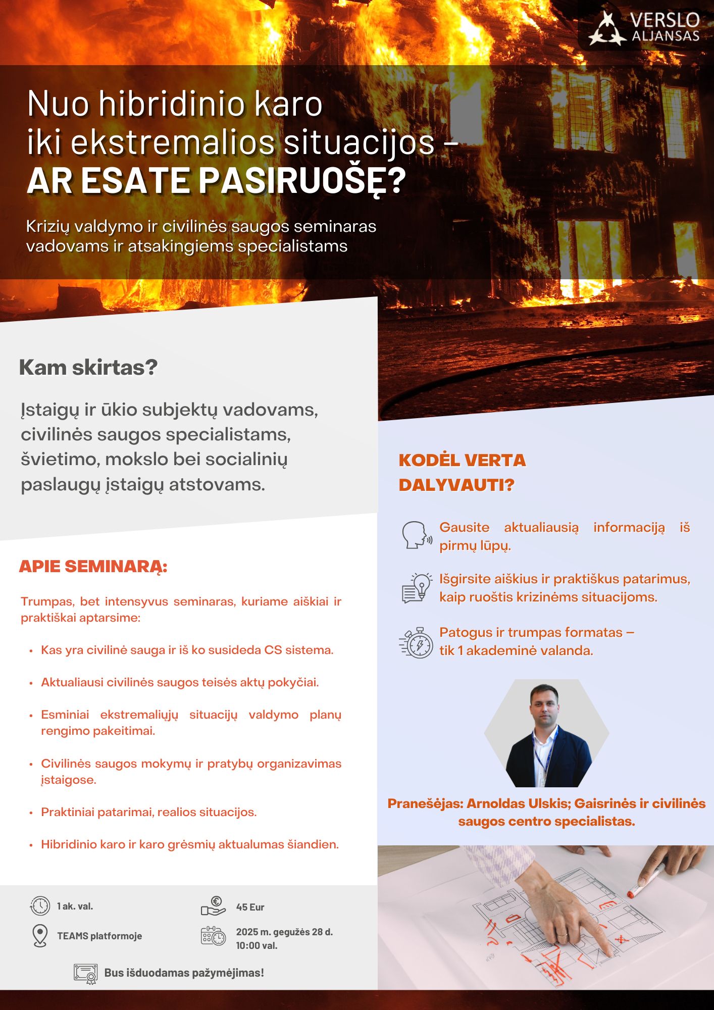 Atnaujinkite savo žinias apie civilinę saugą, vidines ir išorines grėsmes bei pasiruoškite tinkamai apsaugoti savo organizaciją!
