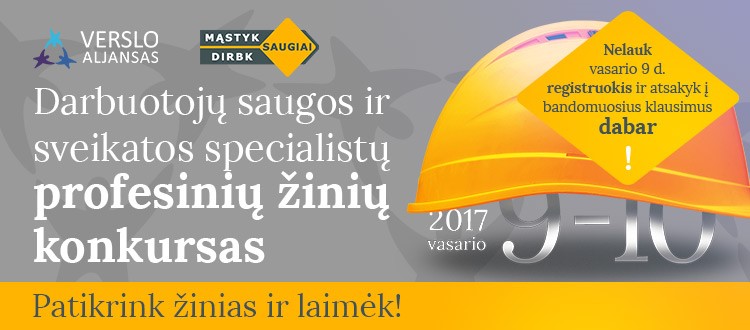 2017 m. vasario 9 - 10 d. vyks jau antrasis Lietuvoje darbuotojų saugos ir sveikatos specialistų profesinių žinių konkursas „Mąstyk – dirbk saugiai“.