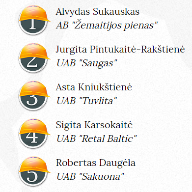 Sveikiname trečiojo Lietuvos darbuotojų saugos ir sveikatos specialistų profesinių žinių konkurso „Mąstyk – dirbk saugiai 2018“ geriausiųjų penketuką: