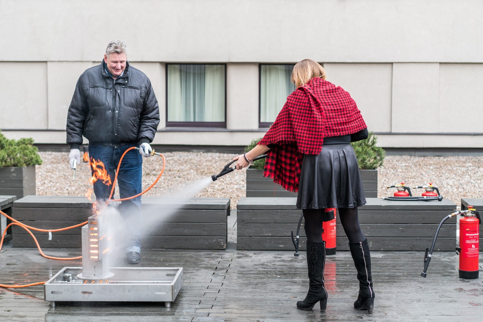 Praktinių mokymų metu naudojami vandens ir suslėgto oro pagrindu užpildyti gesintuvai, esant poreikiui gesintuvus galima papildyti vandeniu tiesiog mokymų metu. Mieste galima naudoti 6 m atstumu nuo statinių, nereikalaujama jokių specialių leidimų. Pradinis gaisro židinys užgesinamas saugiai ir maksimaliai greitai.
