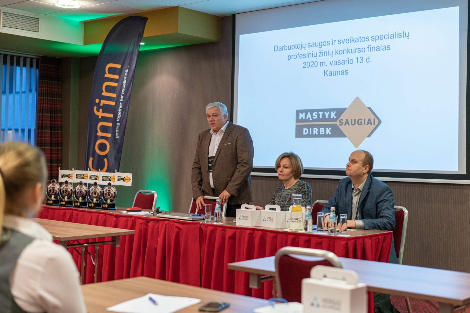 Konferencijos Kaune metu įvyko penktojo profesinių žinių konkurso „Mąstyk – dirbk saugiai“ finalas, skirtas darbuotojų saugos ir sveikatos specialistams, darbdaviams ir visiems, įgyvendinantiems darbo saugos reikalavimus kasdienėje praktikoje. Jame dėl 5 prizinių vietų varžėsi 19 geriausiai į atrankos etapo klausimus atsakiusių darbuotojų saugos ir sveikatos specialistų. Visi konkurso dalyviai atsakinėjo į testo klausimus ir sprendė praktinę užduotį.