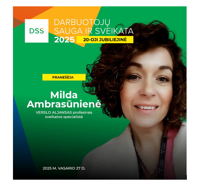 Renginyje mūsų lektorė Milda Ambrasūnienė skaitė įkvepiantį pranešimą apie tai, kaip dėmesys darbuotojo psichologinei ir emocinei būsenai gali padėti išvengti nelaimingų atsitikimų darbo vietoje bei kaip išvengti profesinių ligų. Milda dalijosi praktiniais pavyzdžiais ir realiais atvejais, kaip sėkmingai įgyvendinti DSS projektai keičia darbo kultūrą įmonėse, kai bendradarbiauja DSS specialistas, vadovas ir darbuotojai.